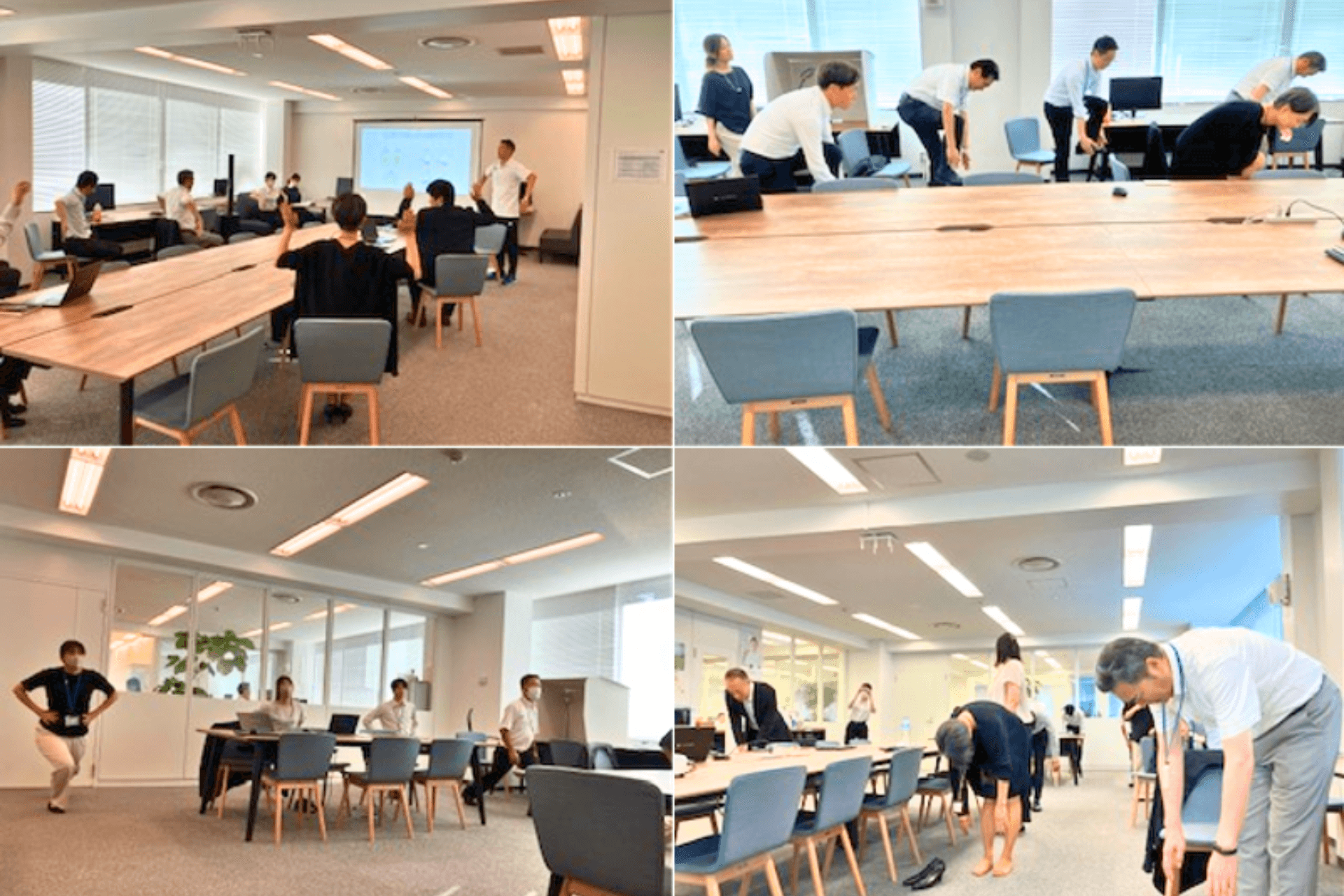 ・運動:毎月1回、全社共通の運動時間を設け、ラジオ体操やヨガを実施。