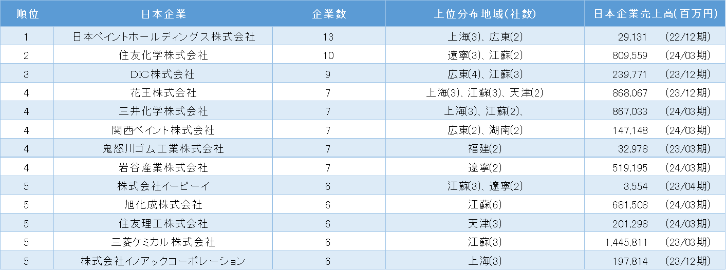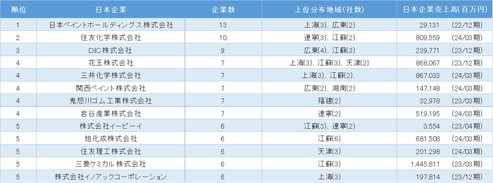 「中国における日系化学工業の市場動向」調査結果を発表 ~プラスチック製品業が3割超、 企業数最多は日本ペイントホールディングス~