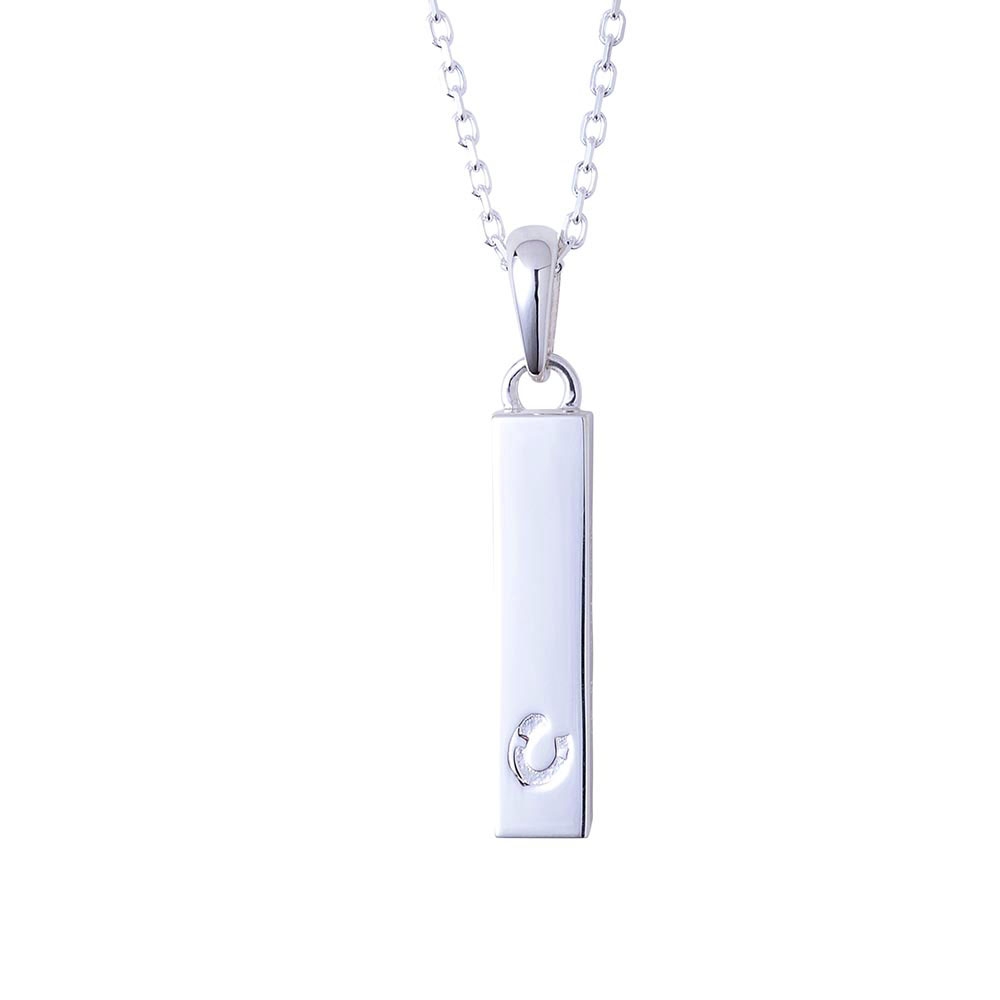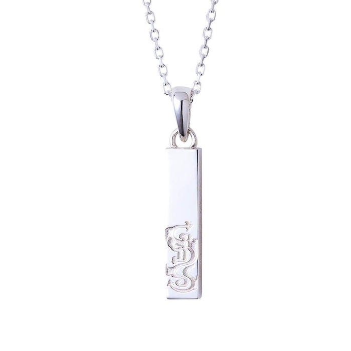 バータイプのネックレストップは槌目加工と鏡面加工の異なるテクスチャーで仕上げ、喧嘩をしても立ち上がる姿を2層で表現しました。