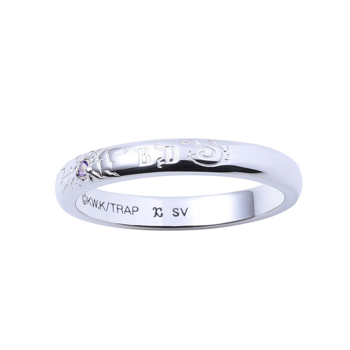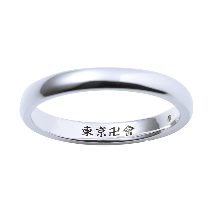 甲丸フォルムのリングに弾痕と右手のタトゥーを取り込み、イメージカラーのアメジストをセット。内側には「東京卍會」を黒塗装で刻印しました。