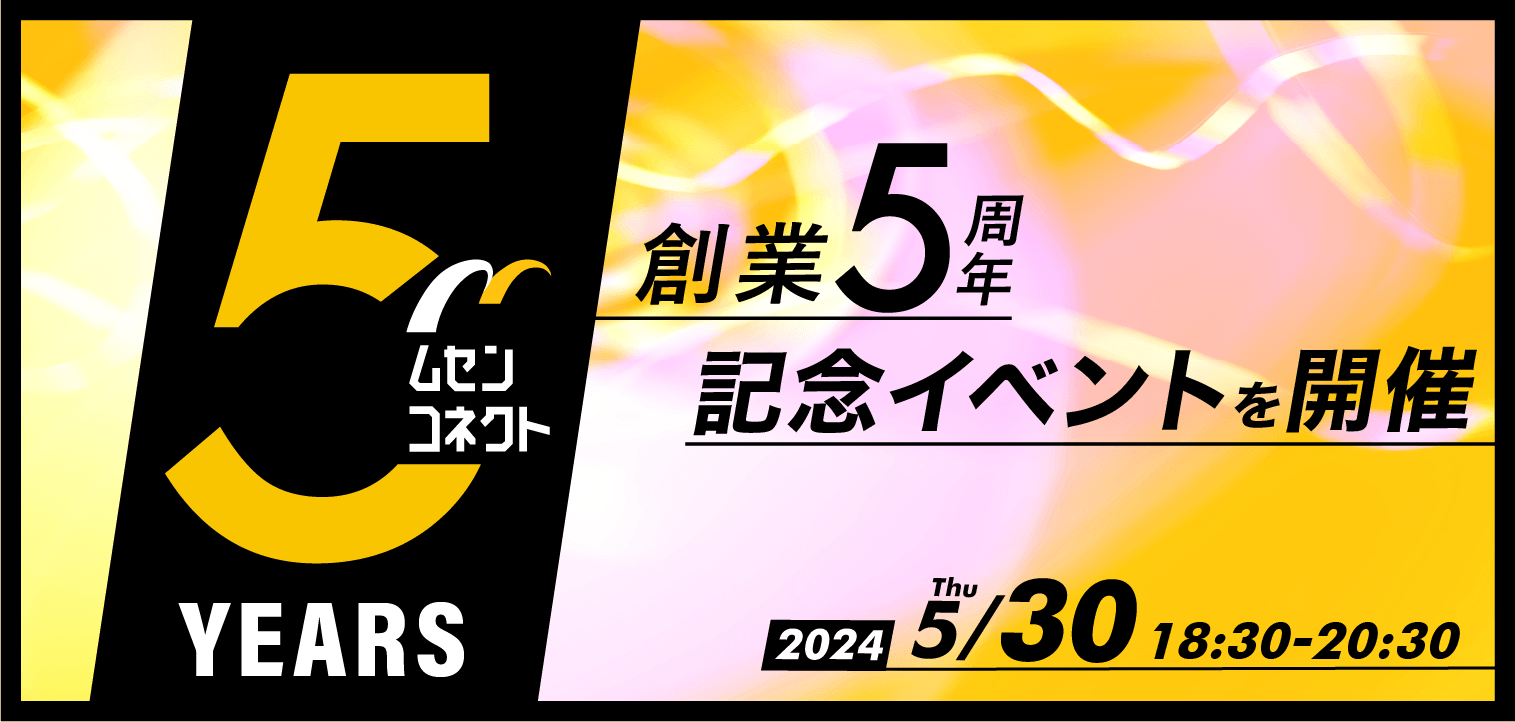 株式会社ムセンコネクト(代表取締役:水野 剛、本社:東京都港区、以下 当社)は、2024年4月をもって創業5周年となります。そこで、創業5周年の節目を記念し、当社初となるお客様・関係者様をご招待したオフラインイベントを2024年5月30日(木)に開催いたします。当社製品・サービスをご利用いただいているお客様、そしてご協力をいただいている関係者様を主役としたイベントでは、日頃の感謝を直接お伝えすることは勿論、ご来場者様同士の交流を図るとともに、当社代表より、今後の当社の戦略や展望についてもお伝えする予定です。