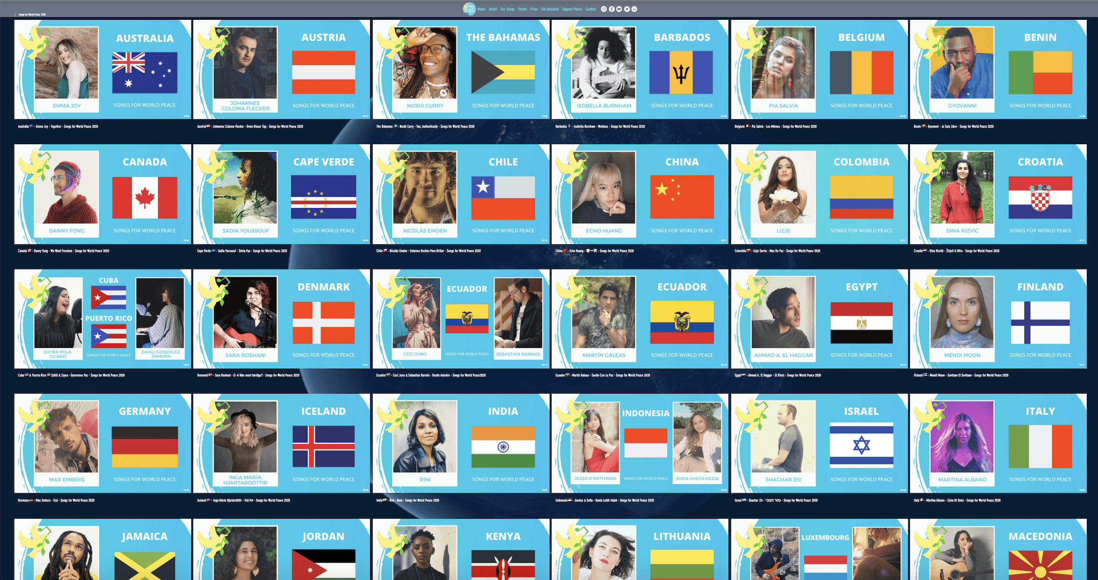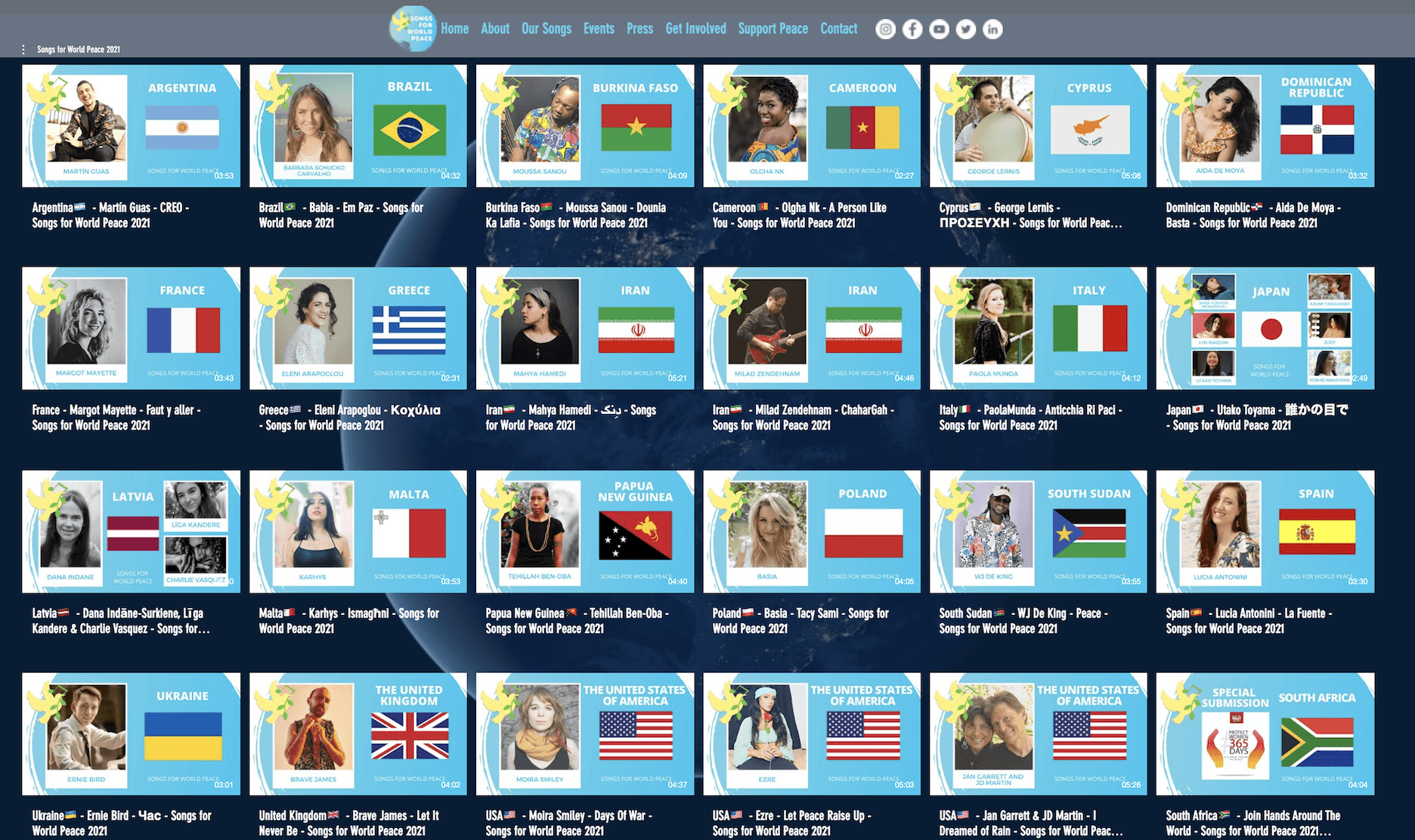 2020年世界平和の日にイニシアチブをローンチして以来、今年のリリースをもって世界80か国以上から100人以上のアーティストが制作した90曲の平和の歌が集まったことになります。当イニシアチブの使命は世界190か国以上から190人以上のアーティストによって60以上の言語で書かれた190曲以上をリリースすることです。
