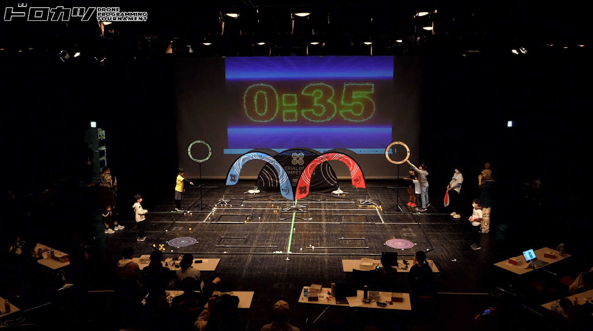 60秒間、ドローンを自律的に操作するプログラムを作成し、得点を競います。ボールを倒したり、風でボールを移動させたり、様々な課題をクリアすることでスコアを獲得できます。創造力あふれるプログラミングスキルが試されます。