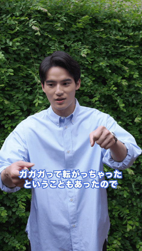 交通安全というものは、誰にだって必要なものであり、身近な存在であるので、そのことを啓発するような作品に携わることができて嬉しかったですね。作品は、ドラマチックに作っていく方針だったので、僕としては芝居の延長線上というか、芝居の中にあるような要素が撮影の中にすごくあって、やりやすく、スピーディーな現場の中ですけれども、楽しみながら演じられました。