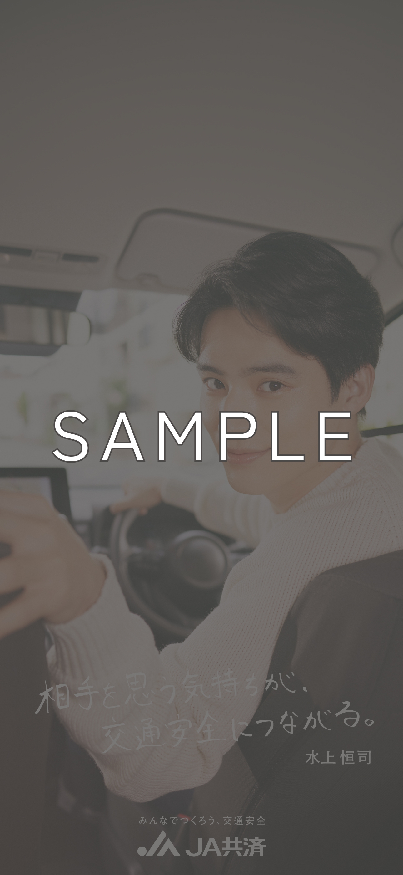 水上さんが運転席から微笑みながら後ろを振り向く、水上恒司×JA共済オリジナル壁紙をプレゼントします。特設サイトから無料でダウンロードいただけます。