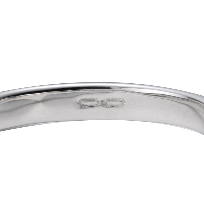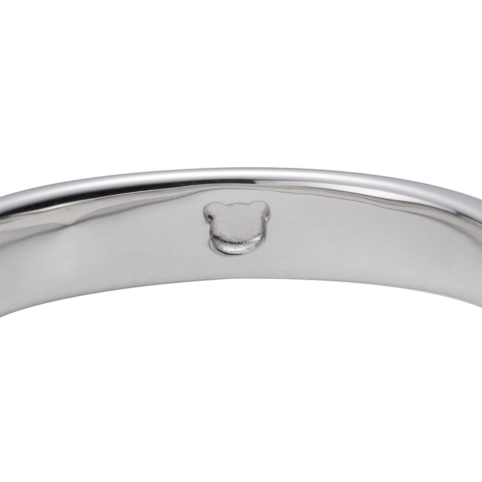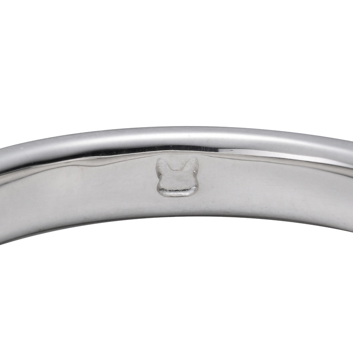 耳と胸元のモチーフを取り込んだ平打ちフォルムの表面に、イメージカラーストーンをセット。内側には猫のぬいぐるみの形を刻印しました。