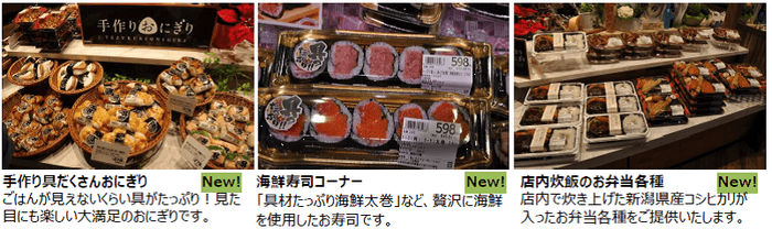 お肉売り場と手作りパンの「小麦の郷」は商品棚を増設し、新商品が登場いたします。また、農産売り場と日配食品売り場はさらにお買い物しやすく売り場をリニューアルいたします。