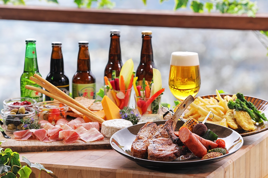 4Fのレストラン「エレメンツ」では、九州の豊富な海と陸の食材を贅沢に使った前菜がビュッフェボードを飾り、お選 びいただける豪華なメインディッシュが嬉しい期間限定の「九州フェア〜Land & Sea〜」を開催いたします。また、こ れからの季節にぴったりなイベント、開放的なレストランテラスでご利用いただけるビアフェスタ「スプリングテラ ス」をご用意。爽やかな風を感じならがクラフトビールと相性抜群のお料理で最高のひとときをお過ごしいただけます。