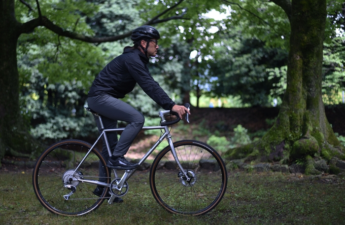 ⽇本のフィールドや⽇本⼈の脚質に合わせて、中速程度の走行時に心地良く、かつよく進み、そして荷物を積載した時に荒れた路面でもバランスよくハンドリングが安定する独自設計のオールクロモリ製のサイクリング車です。