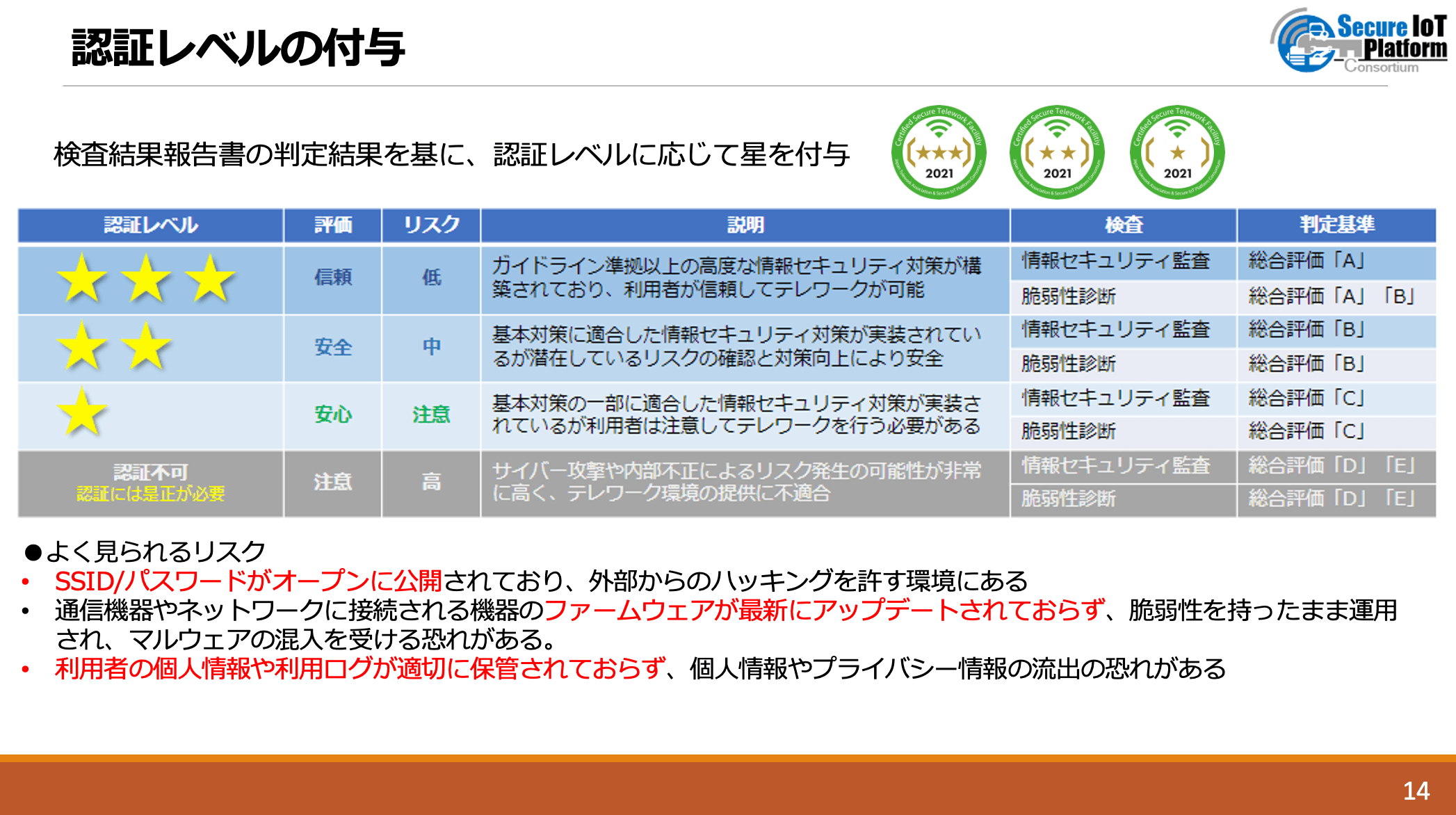 当テレワーク施設は、一般社団法人日本テレワーク協会および一般社団法人セキュア IoT プラットフォーム協議会による、「共同利用型オフィス等セキュリティ認証プログラム」に基づき、最高レベルのトリプルスターに適合していることの認証を受け高度なセキュリティ機能を装備したテレワーク施設となりました。