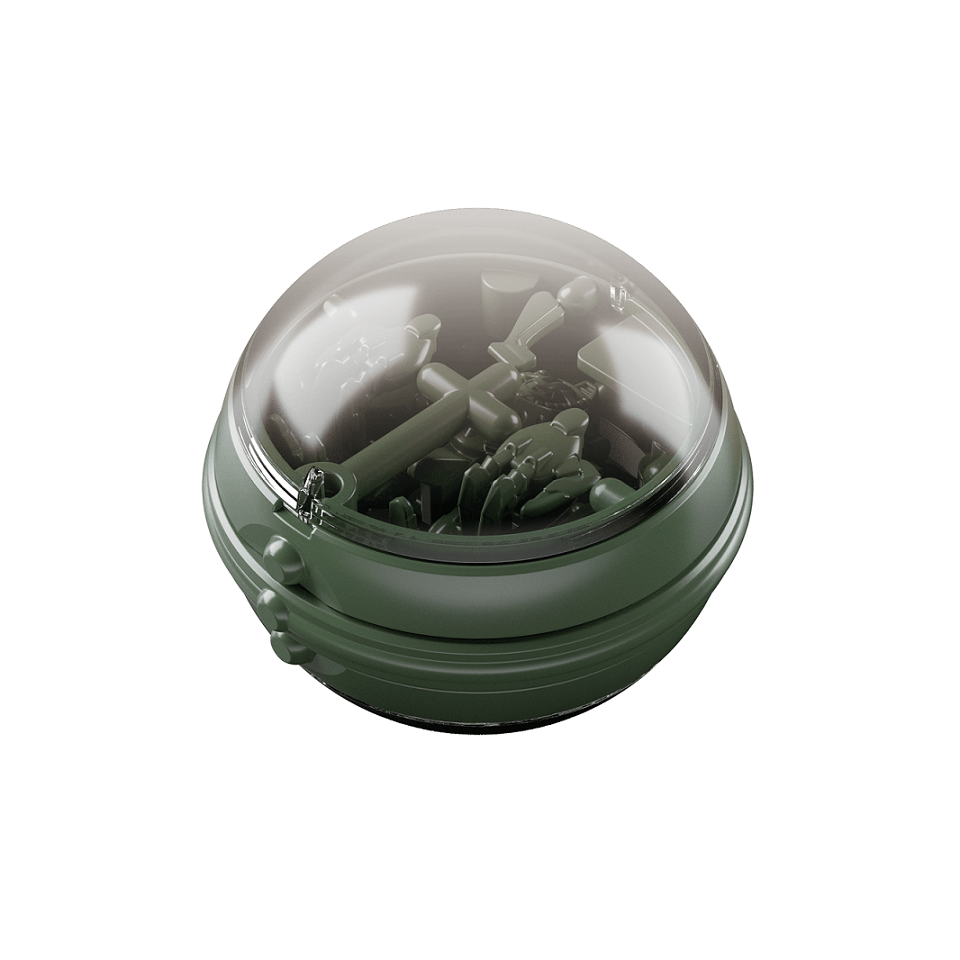 「カプセル型ランナー入り入浴剤」は、入浴剤が溶けると中からminiガンプラのカプセル型ランナーが出てきます。カプセル型ランナーからパーツを外して組み立てると、全長約30mmの「水陸両用モビルスーツ」(モビルグーンないしモビルゾノのいずれか)が完成します。