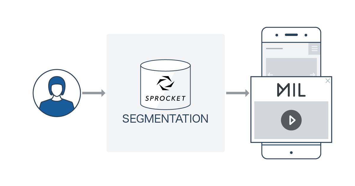 SprocketとMILが連携することで、ユーザーに最適なタイミングでMILのインタラクティブ動画を表示したり、動画の視聴データをSprocketのセグメント条件に利用したりすることが可能になります。