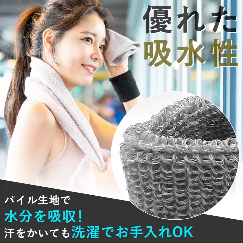 スタイリッシュでシンプルなデザインのリストバンドは、ブラック・ホワイト・グレー・ブルーの4色展開で、どんなスポーツウェアにも合わせやすいです。