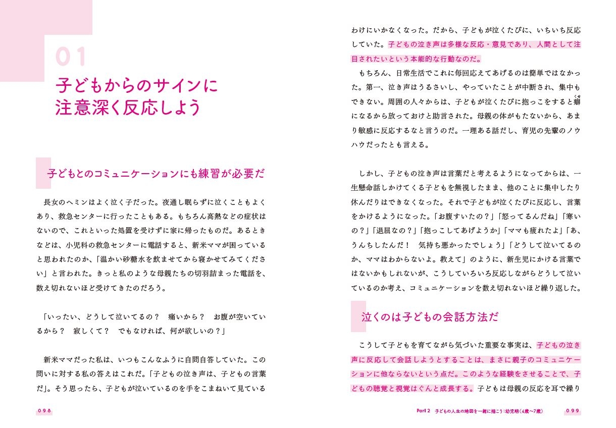 その答えの代わりに書いたのが、この本だ。そして結局、わが家の家庭教育が、3 人の娘をハーバードに合格させたDNA だということを発見したのだ。そして、そのDNA が具体的に何なのかを教えてあげれば、少しでも子どもを育てるすべてのお母さんたちの役に立てるかもしれないと考えた。本書が大切な子どもたちにとって、自分のなかにある偉大な巨人を発見し、目覚めさせるきっかけになってくれたらいいと思う。