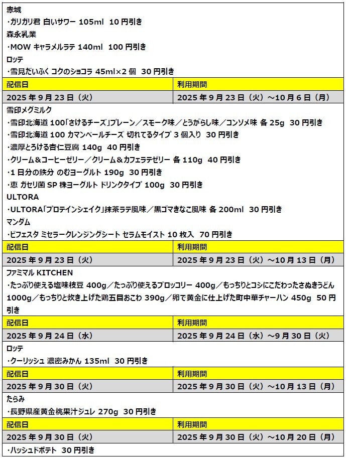 株式会社ファミリーマートは、2025年10月の飲食料品約3,000品目値上げを受け、生活応援施策として、ファミマのアプリ「ファミペイ」(以下:「ファミペイ」)の利用者さまに、飲食料品、生活用品などのクーポンを9月2日(火)より順次配信いたします。