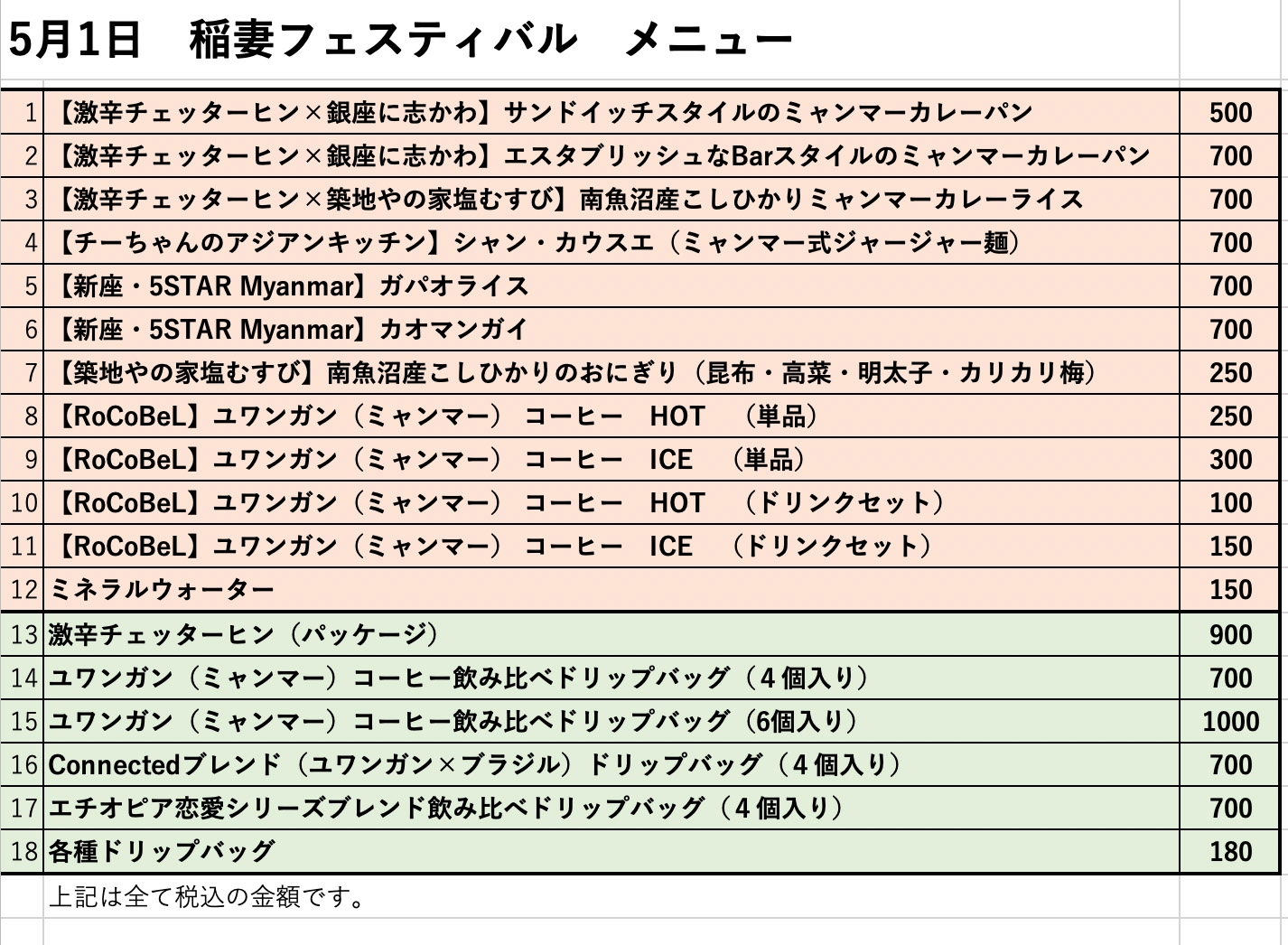 ビーンズ・コネクティッド株式会社は炊飯器でお米を炊くように、誰でも簡単そして失敗なくコーヒー豆の焙煎ができる小型自動焙煎機の開発とそれを使ったコーヒー自家焙煎ビジネス・プラットフォーム「RoCoBeL(ロコベル)」の展開を目的に、現在、フィジビリティ・スタディをしている会社です。RoCoBeLの大きな特徴の一つがミャンマーの南シャン州にあるユワンガンからフェアトレードで購入したミャンマー産コーヒーを取り扱っていることです。この度、RoCoBeLフレンズとしてFSに協力いただいている店舗とともにミャンマー料理のキッチンカーを「稲妻フェスティバル」に出店します。そして、その目玉商品が既にテレビ等でよく知られている『チェッターヒン』と『水にこだわる高級食パン』とのタイアップで実現した特製ミャンマー・カレーパンです。