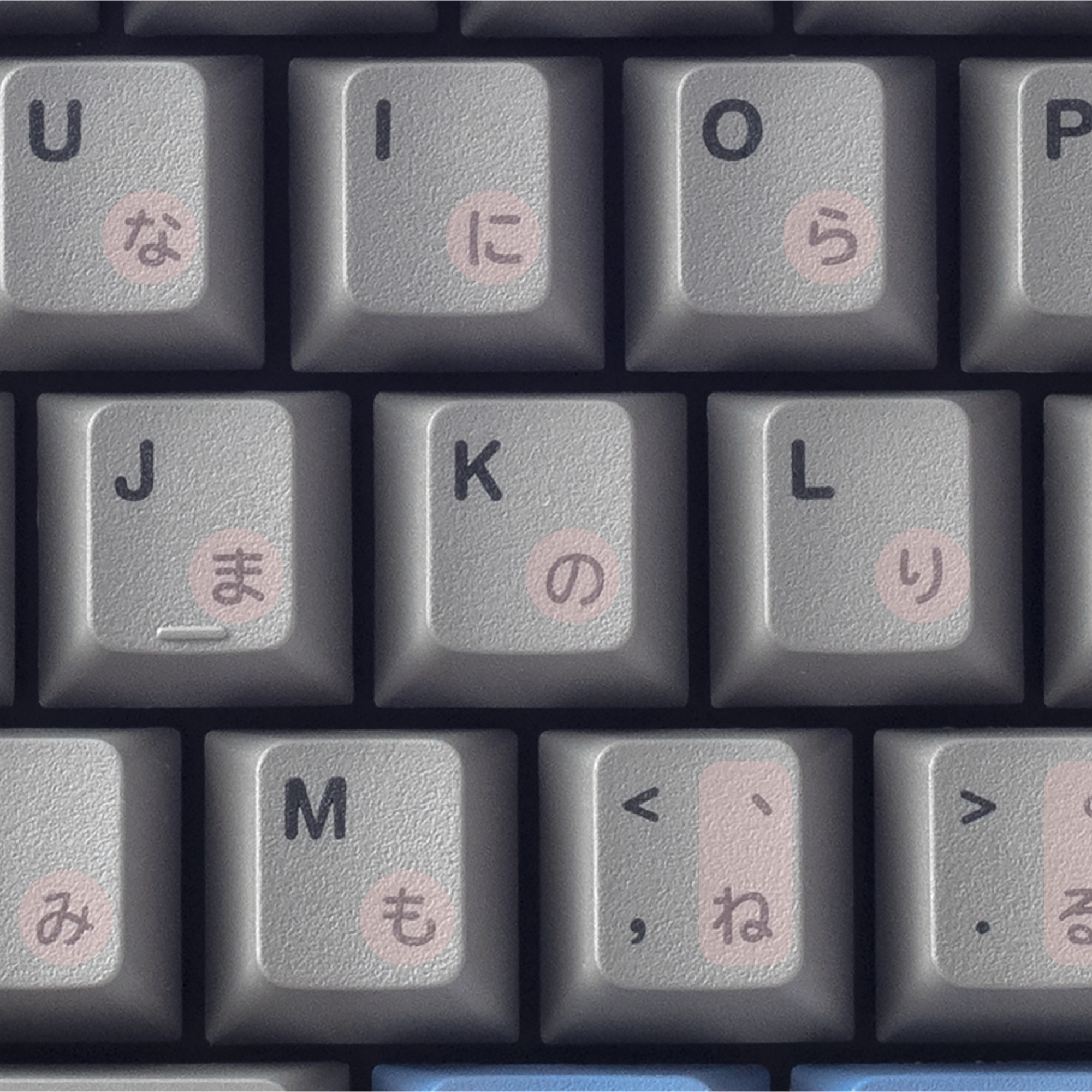 日本人の多くの方に馴染み深い、日本JIS配列を採用。成形加工の難易度とトレードオフである、フォントサイズの最小化にも挑戦。柔らかさがある、大きすぎないポップなフォントに仕上げました。