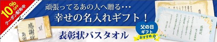 まるで本物の表彰状のようなデザインに、贈り主のお名前と記念日を加えることで、“世界にひとつだけ”の表彰状タオルが完成します。