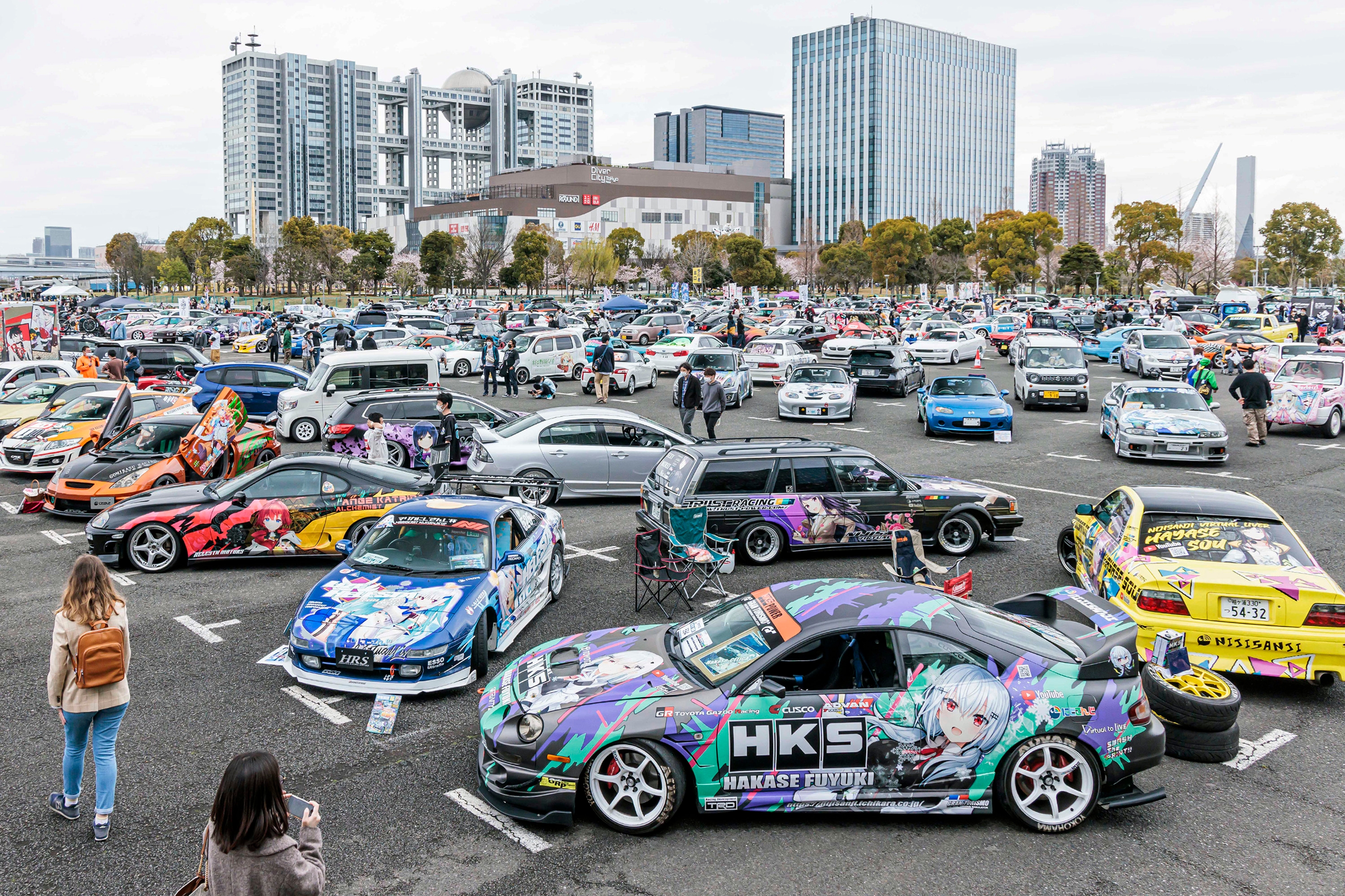 会場を埋め尽くす約130台の痛車展示!(痛単車・痛チャリ含む)
