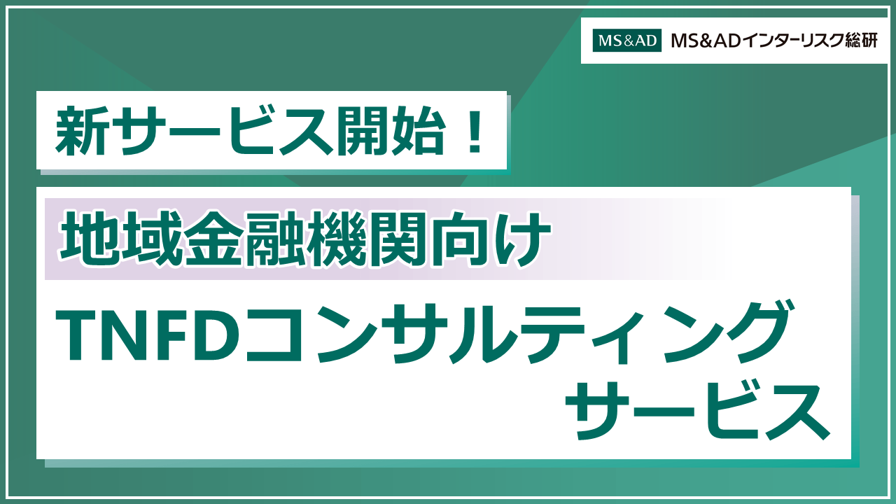 MS&ADインシュアランス グループのMS&ADインターリスク総研株式会社(代表取締役社長:一本木 真史)は、2024年6月より「地域金融機関向けTNFDコンサルティングサービス」の提供を開始しました。地域金融機関は顧客が集中する営業基盤としての重要地域、いわゆる地盤を有しています。地盤の自然と産業の特性および関係性を踏まえることは、地域金融機関にとっての自然関連のリスクを低減し、機会を増大することに欠かせません。本サービスでは、前述したような特性を有する地域金融機関ならではの、自然関連の評価や開示、アクションを支援します。