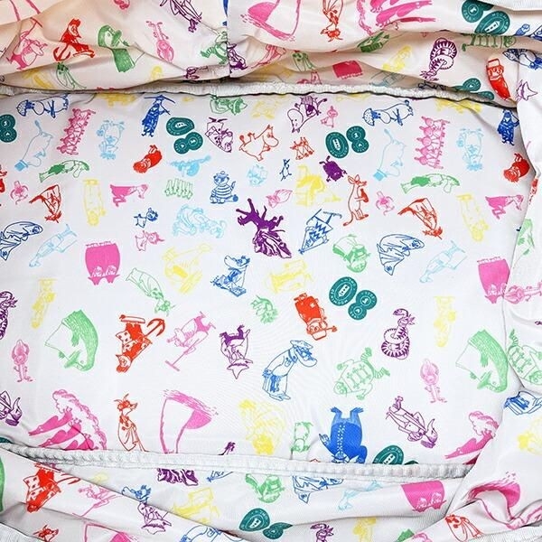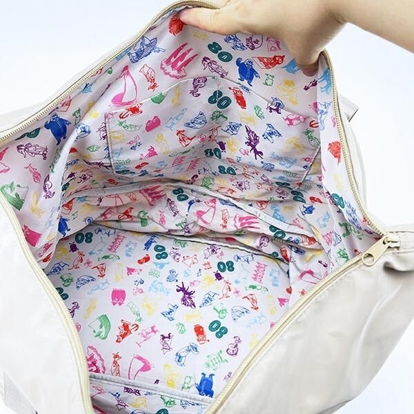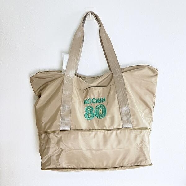 内生地には80周年記念デザイン入りなのでムーミンの世界が広がっている~。わざわざ開いてみんなに見せたくなるようなデザインです。サイズ:28cm×55cm×23cm 素材:ポリエステル