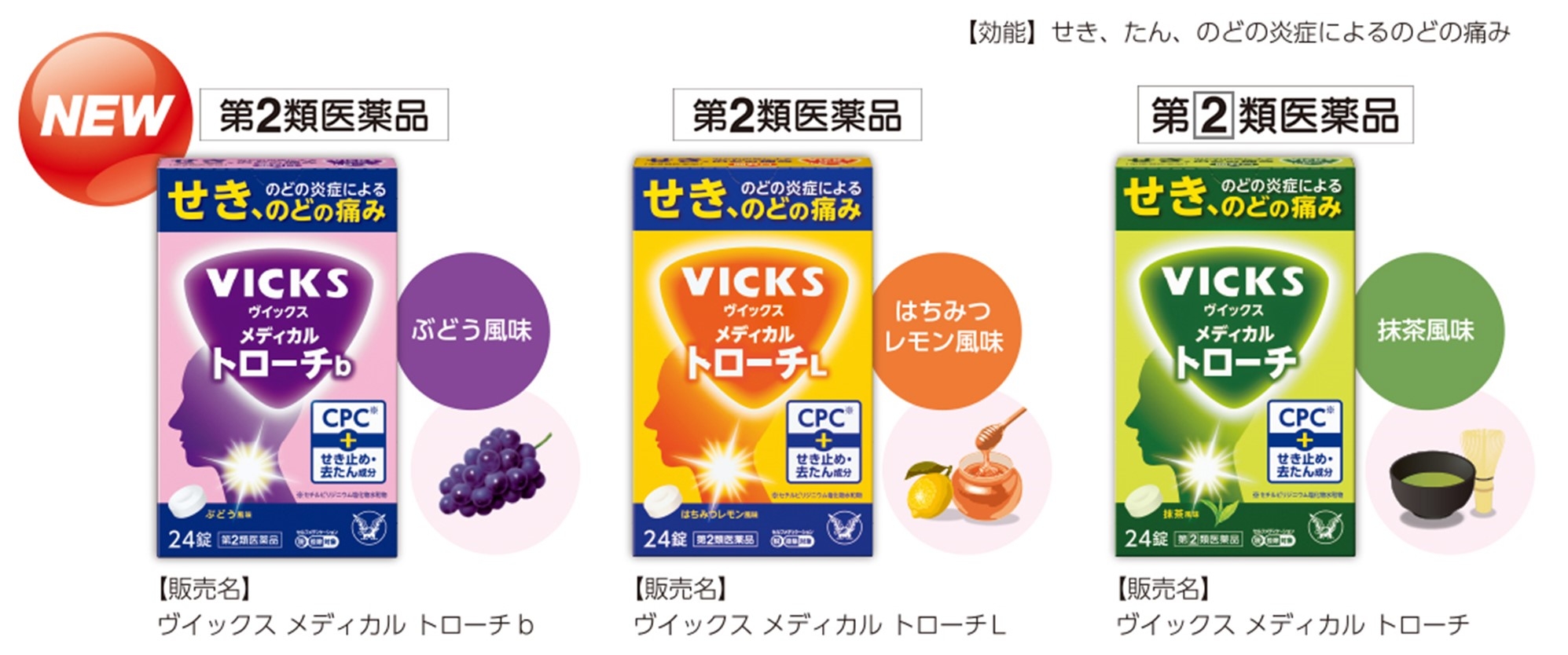 大正製薬株式会社[本社:東京都豊島区 社長:上原 茂]は、殺菌成分CPC(セチルピリジニウム塩化物水和物)を配合したトローチ剤「ヴイックス メディカル トローチb」ぶどう風味(第2類医薬品)を、10月1日(火)より新発売いたします。
