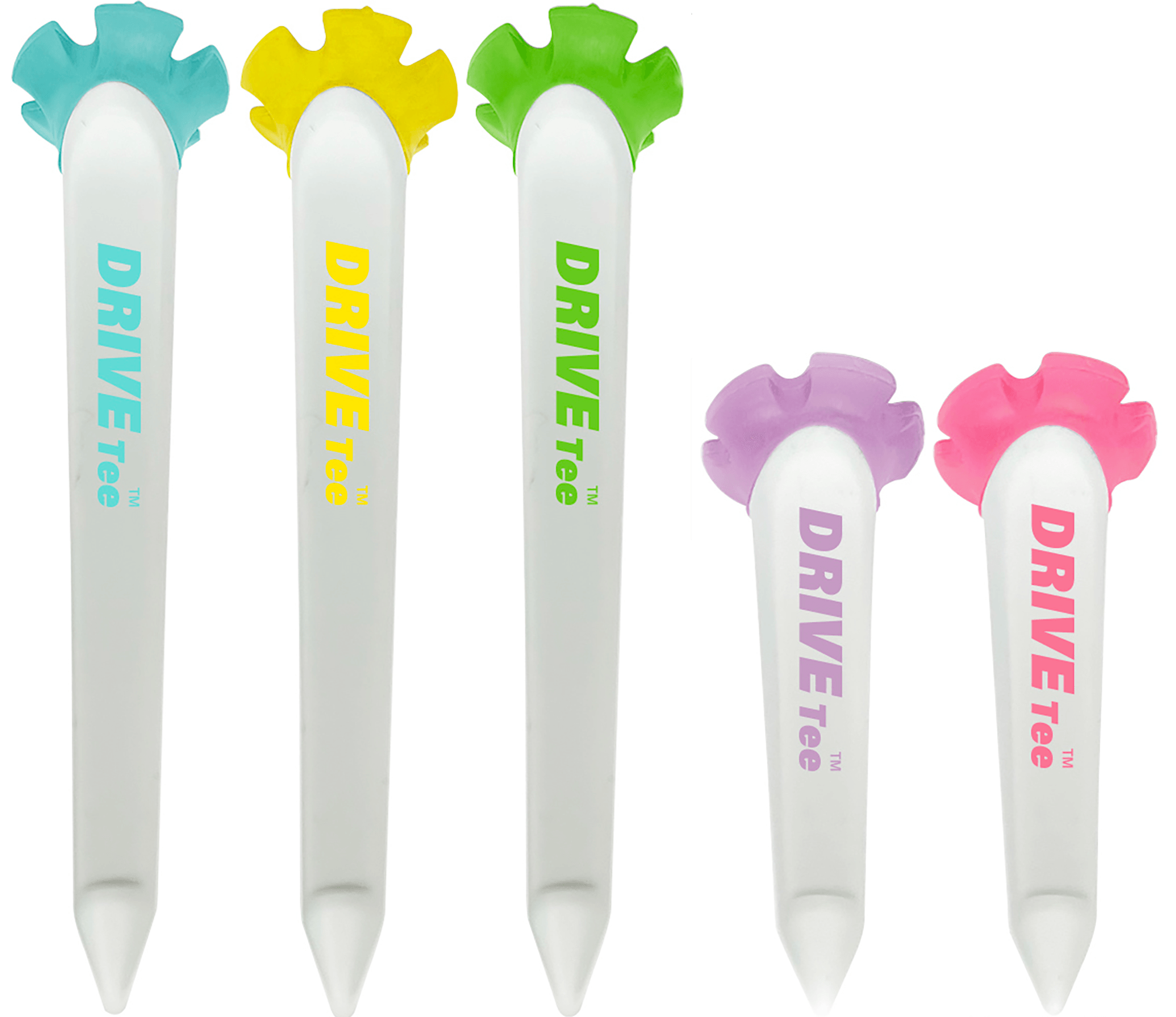 プロアマ問わずゴルファー絶賛!いつもより曲がらない・ 飛ぶと好評 花びら型ティー『DRIVE TEE(R)』より 刺す位置が分かるライン入り新色セットが9/20に新登場!