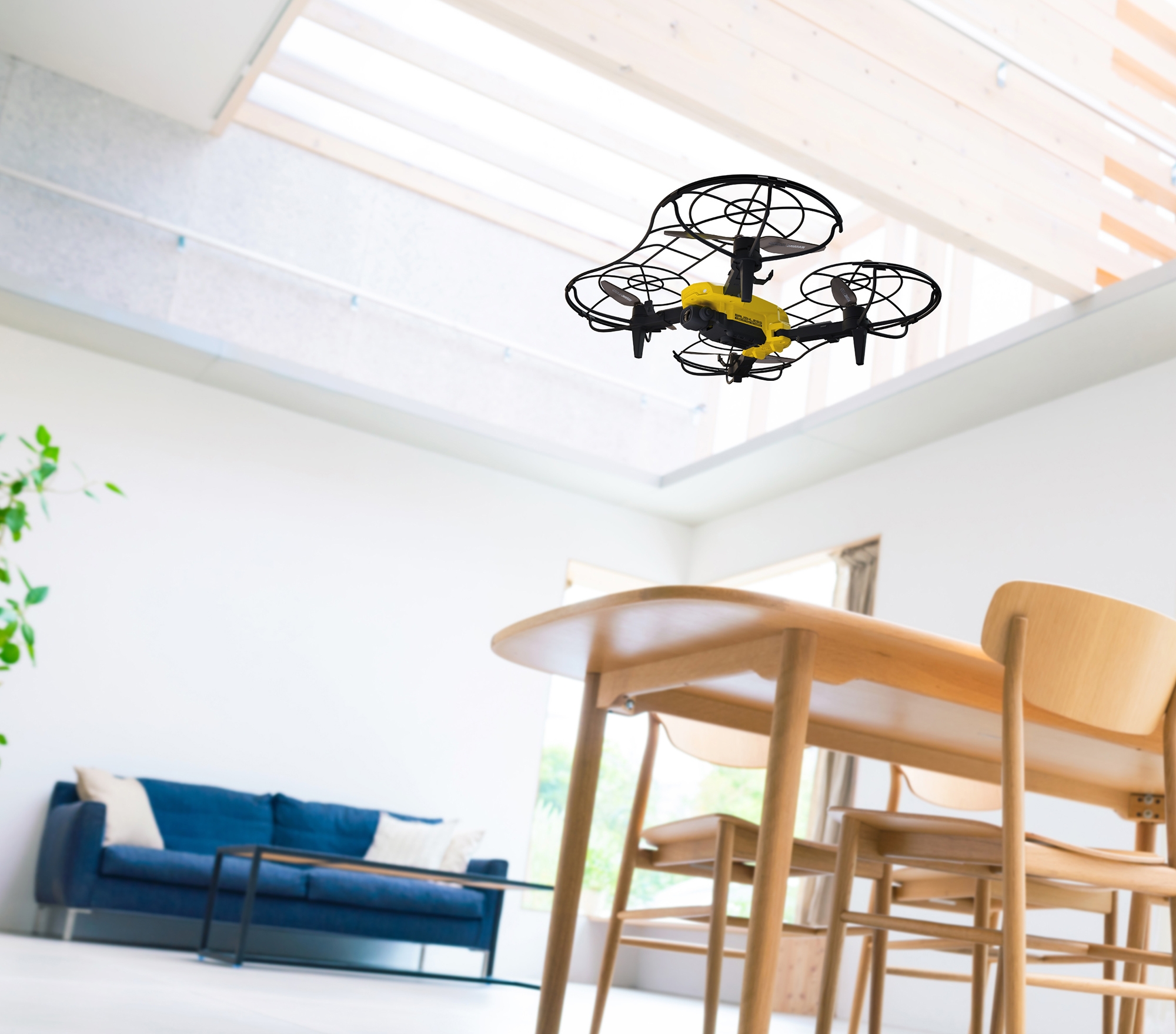 全面保護タイプのプロペラガードが標準で付属。軽量で柔軟性のある材質が機体を保護。フライトの安全性を高め、高速で回転するブラシレスモーターから人や物を守ります。