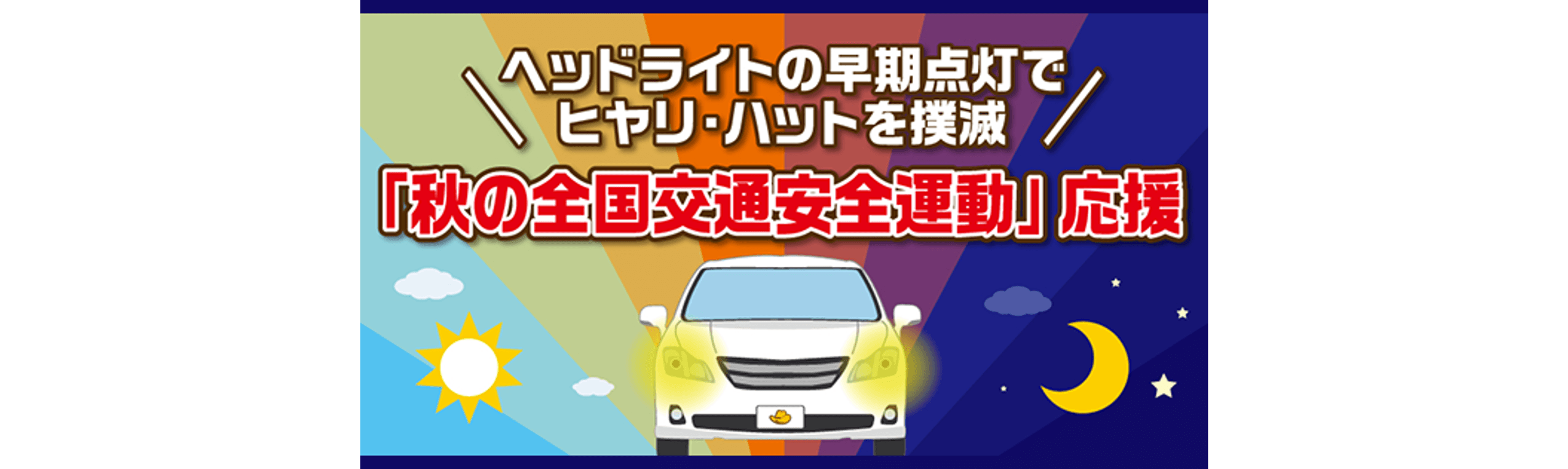 人間は「徐々に変化するもの」に気づきにくい性質があります。知らない間に周りが暗くなっていた。ということにならないように“ヘッドライトの早期点灯”の重要さを啓発するキャンペーンを実施しました。