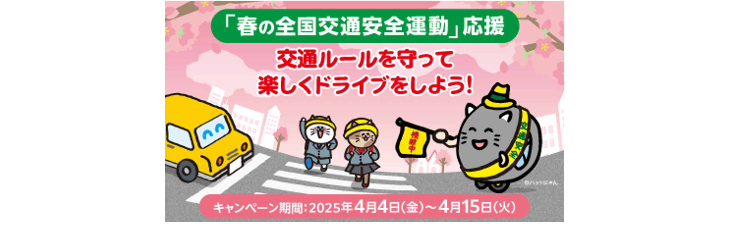 2024年の内閣府推進「春の全国交通安全運動」の重点項目のひとつに掲げられている「歩行者優先意識の徹底と「思いやり・ゆずり合い」運転の励行」に協力するため、キャンペーンを実施しました。