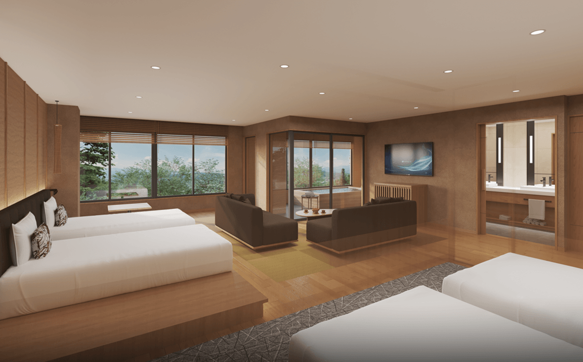 今回のリニューアル工事では、全国屈指の湯量(毎分1,000L 以上)を有する長栄館の魅力を最大限に生かし、岩手・雫石エリアを牽引する観光拠点となる温泉旅館を創出するため、ロビーやエントランス、大浴場や客室に至るまで、大規模な改装工事を行います。本プロジェクトを通じて、2社は、地域の魅力を再発見し、持続可能な観光資源として長栄館を再生することで、地域全体の活性化に寄与することを目指します。