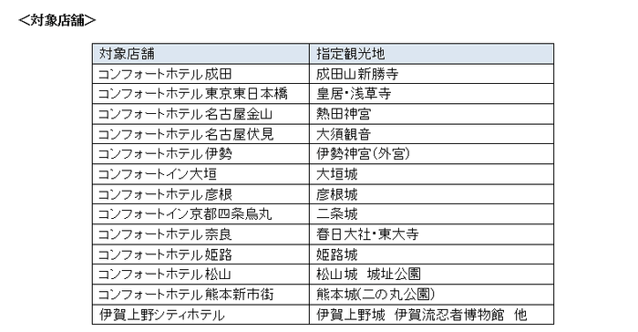 対象店舗:全国のホテル13店舗(次頁詳細)
