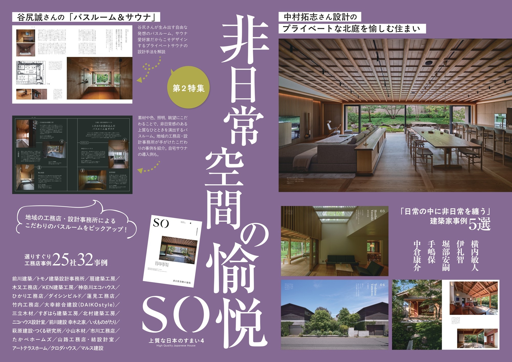 新建新聞社(本社:長野県長野市・東京都千代田区)は、好評発売中の「SO上質な日本のすまい」シリーズの最新号を11/18に発売します。今号の特集は、「非日常空間の愉悦」。日常の中にそっと宿る“非日常空間”を特集します。