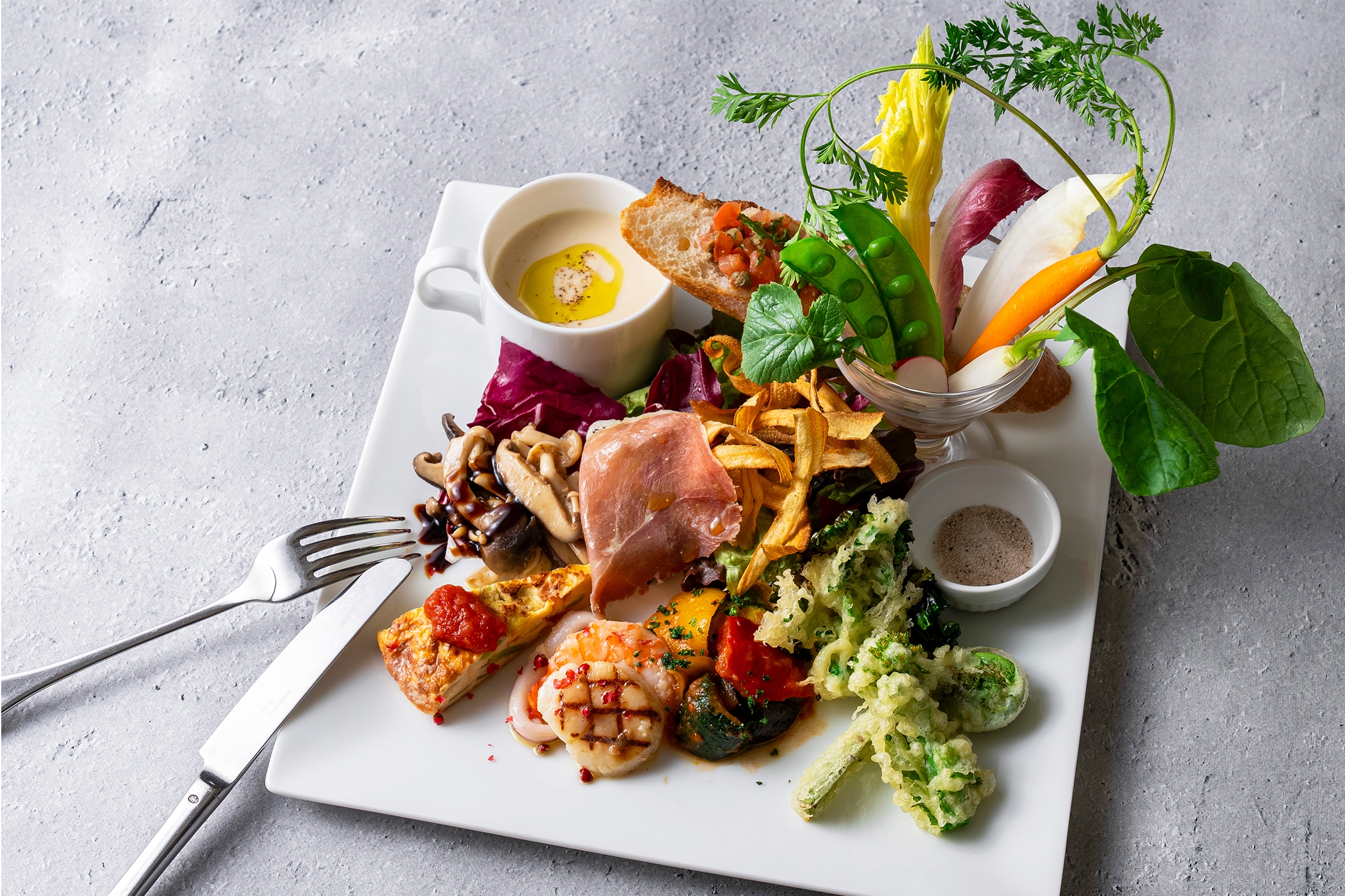 季節の新鮮な野菜をたっぷりと使用しており、サラダ・フリット・マリネ・スープなど彩りとバリエーションが豊かな内容となっています。