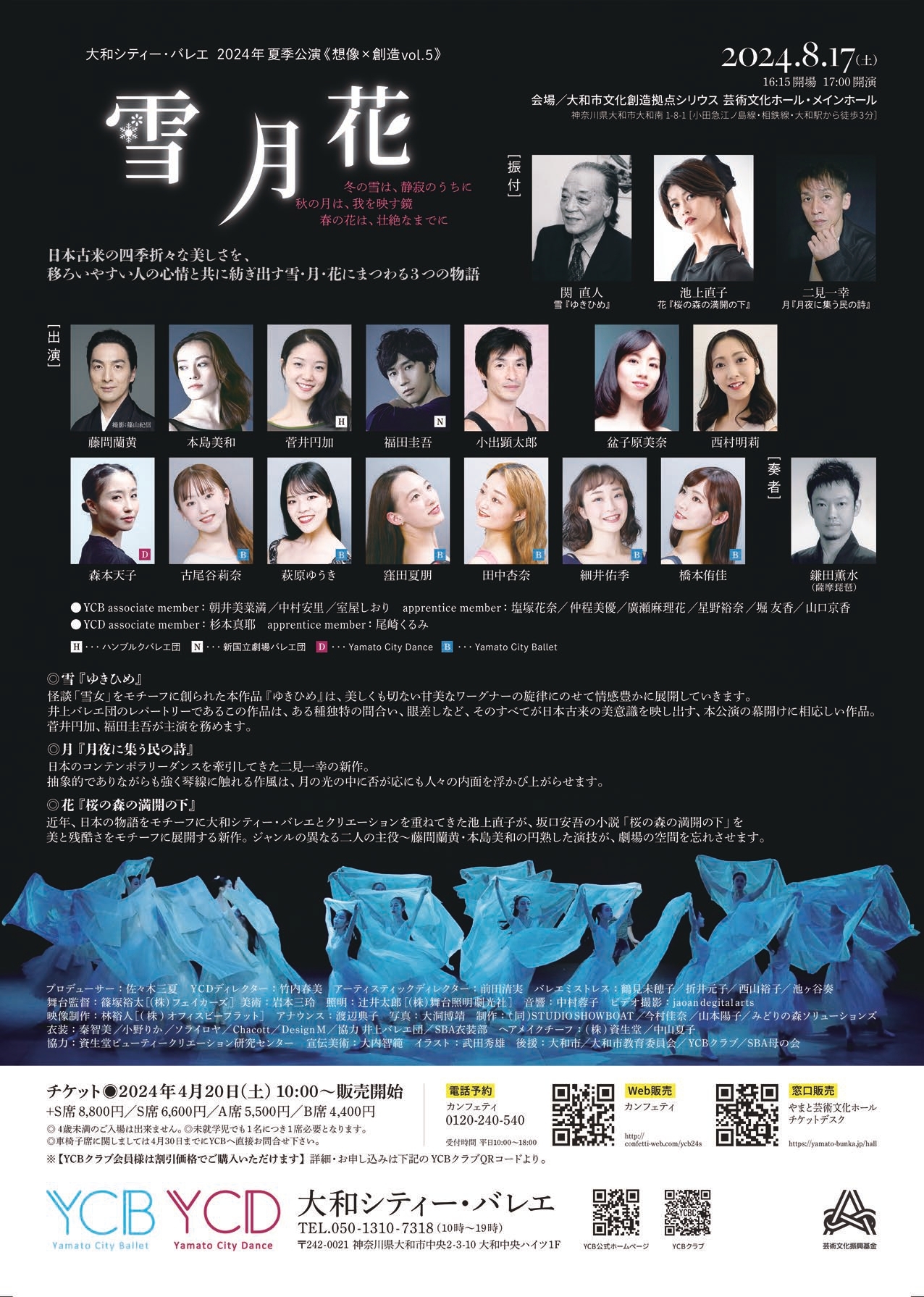 大和シティー・バレエ 想像 × 創造 Vol.5 SUMMER CONCERT 20224 『雪月花』が2024年8月17日 (土) にやまと芸術文化ホール メインホール(神奈川県 大和市 大和南 1丁目8-1 シリウス 1階)にて上演されます。