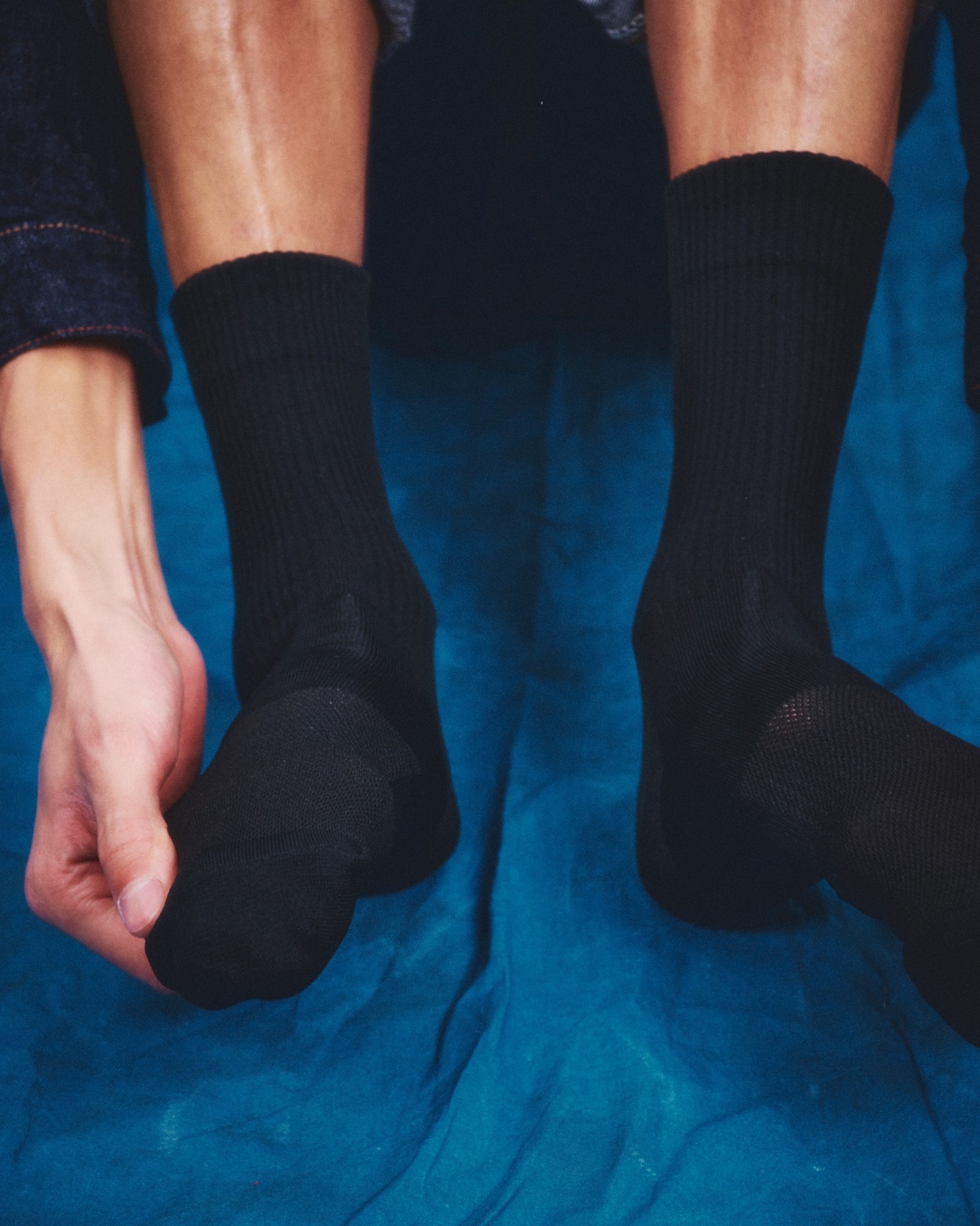 JOHN GLENNのプロダクトは、ブラックとホワイトの2色のみ。「制限こそが創造の源である」との信念のもと、色に頼らず、ディテールと機能性、そして履いたときのシルエットの美しさを徹底的に追求しています。ラインナップは全6モデル。すべてのアイテムに滑り止め機能(ノンスリップ)を搭載し、フィット感・通気性・吸湿性といった履き心地にこだわった、“日常使いの最適解”となるソックスが揃います。