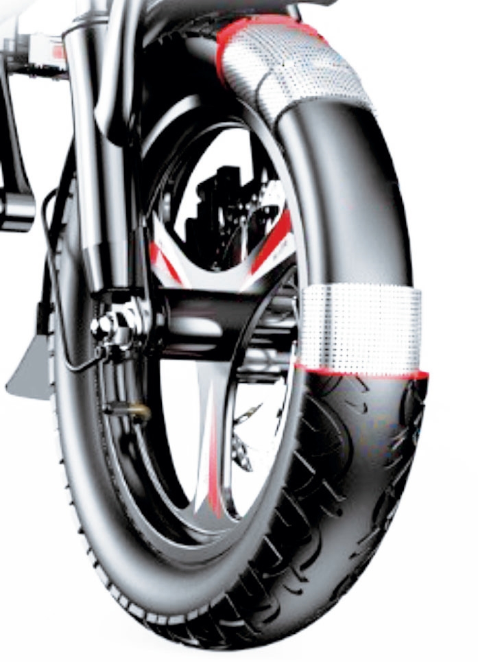 ●タイヤは14インチ防刃強化タイヤを採用 普通タイヤよりパンクの心配を減らしました。
