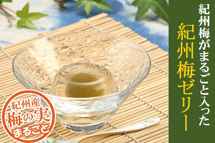 この「紀州産梅の実入り 紀州梅ゼリー」は、甘酸っぱく炊き上げた紀州梅の甘露煮が丸ごと1個入ったまろやかな甘口梅ゼリーで、梅の実の甘露煮とゼリーのハーモニーをお楽しみいただけます。また、口当たりがよく、まろやかな味わいのため、梅が苦手な方にも美味しく召し上がっていただけます。