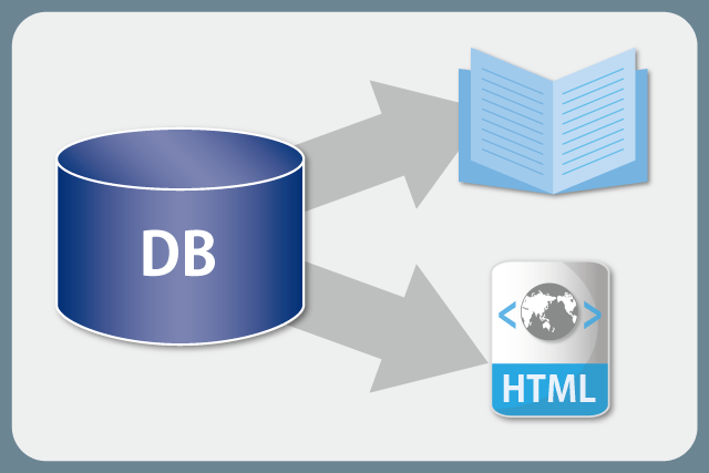 コンテンツをXMLで一元管理しているため、HTML形式による電子マニュアルと自動組版によるPDFをワンソース出力できます。