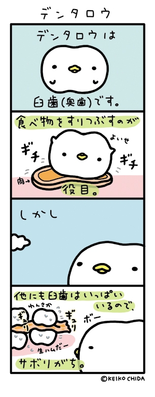 デンタロウはぼんやりとお口の中でくらしている臼歯(奥歯)。