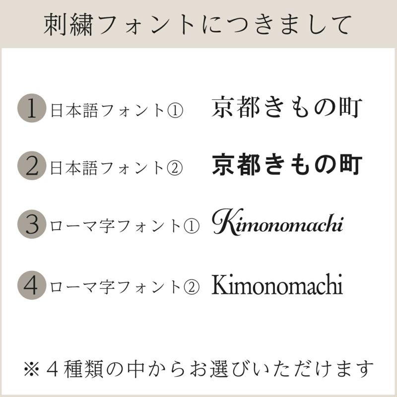 色、フォント、刺繍位置を選べるので、プレゼントや記念品として、特別感を演出できます。