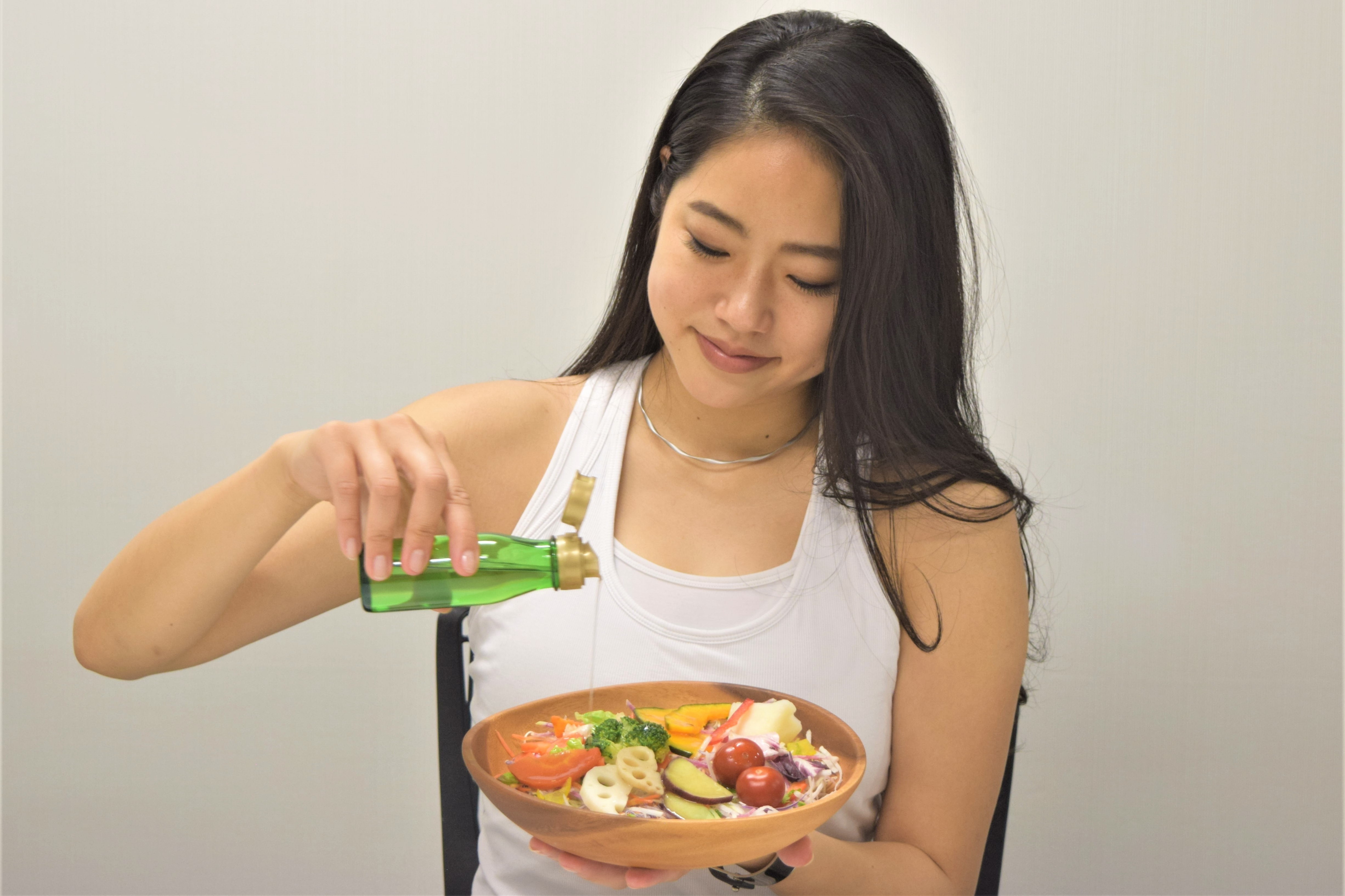 運動や食事において、目的がダイエットであっても生活習慣病予防であっても、大切なことは無理なく続けられることです。私のライフワークであるヨガも、1日1分でも続けてもらうことの大切さを伝えています。食事は、良質な脂質を選ぶことが大切です。MCTオイルは自らの体で効率よくエネルギーを作り出せ、カラダに脂肪として蓄積しにくい良質な油です。無味無臭でどんな食事にも合わせやすく、サラダやお味噌汁のほか「毎日続けられるMCTレシピ」など、日々の食事で使っています。無理なく続け、MCTとともにライフスタイルを変えていきましょう。
