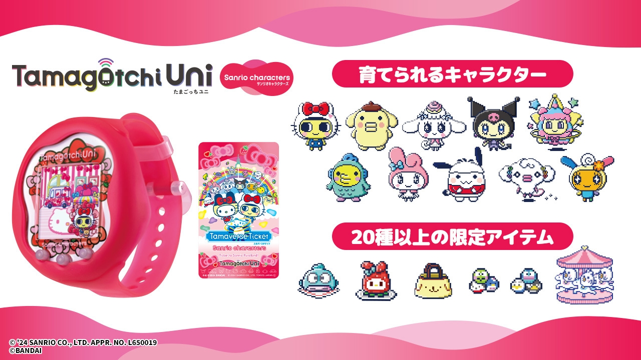 株式会社バンダイは、デジタルペット「たまごっち」と、株式会社サンリオのキャラクターズたちとのコラボレーション商品を『Tamagotchi Uni(たまごっちユニ)』と『Tamagotchi nano(たまごっちナノ)』の2つのシリーズから発売します。(発売元:株式会社バンダイ)