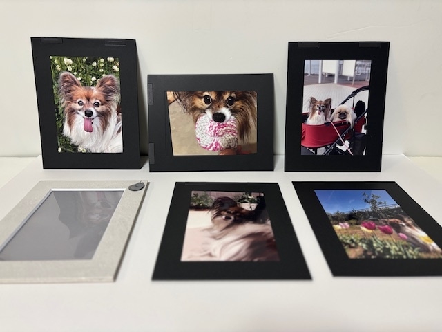 シンプルで上質なデザインのフォトフレームには、マグネット式の台紙を採用。PETLIFで撮影した一枚と、お客様が選んだお気に入りの4枚を組み合わせ、心に残るフォトアルバムとして仕上げます。