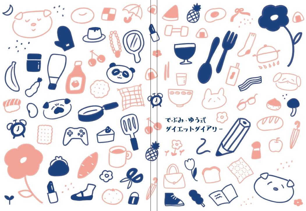 さらにダイアリー部分にもオリジナルキャラクターのぶたさんたちがちりばめられていたり、ゆうさんからの日々のダイエットポイントがつぶやかれたり、工夫が満載。毎日開いて書き込むのが楽しみになるダイアリーになりました!
