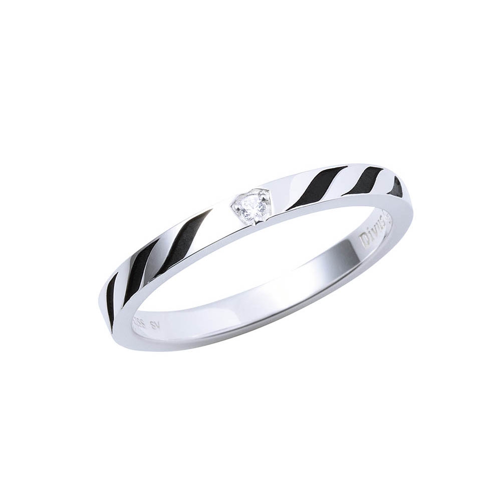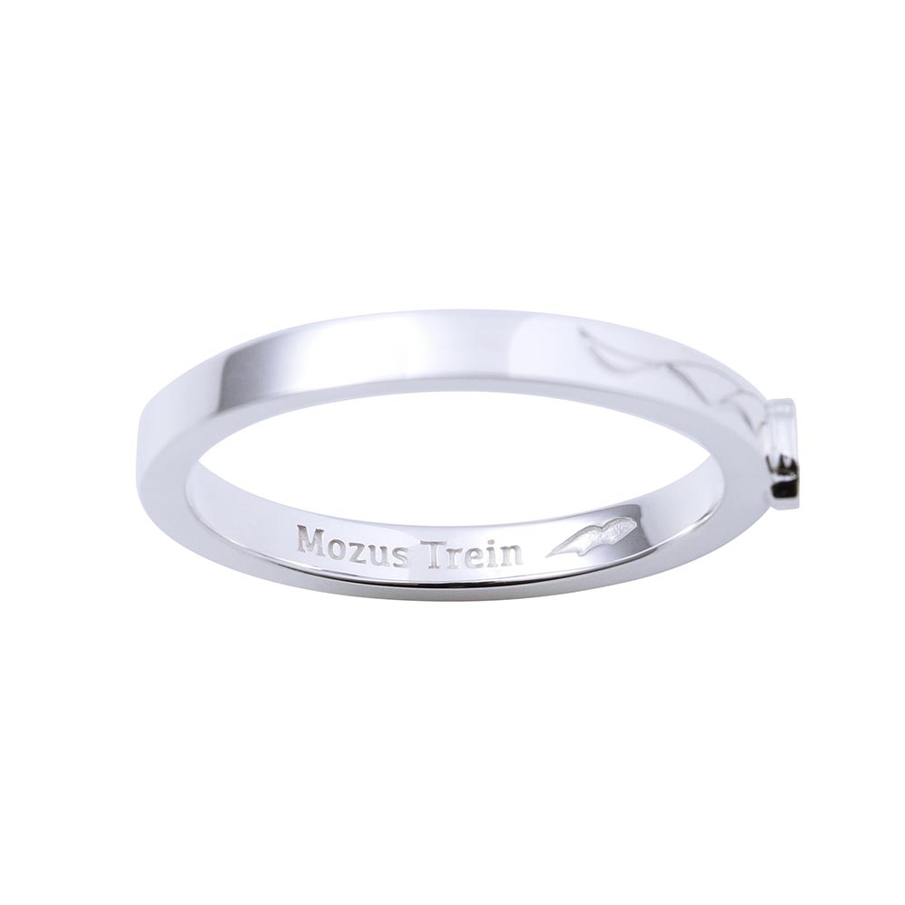 ストレートフォルムのリングに毛皮のコートの模様を取り込み、イメージカラーのホワイトのストーンをセット。内側には名前とフラスコを刻印しました。