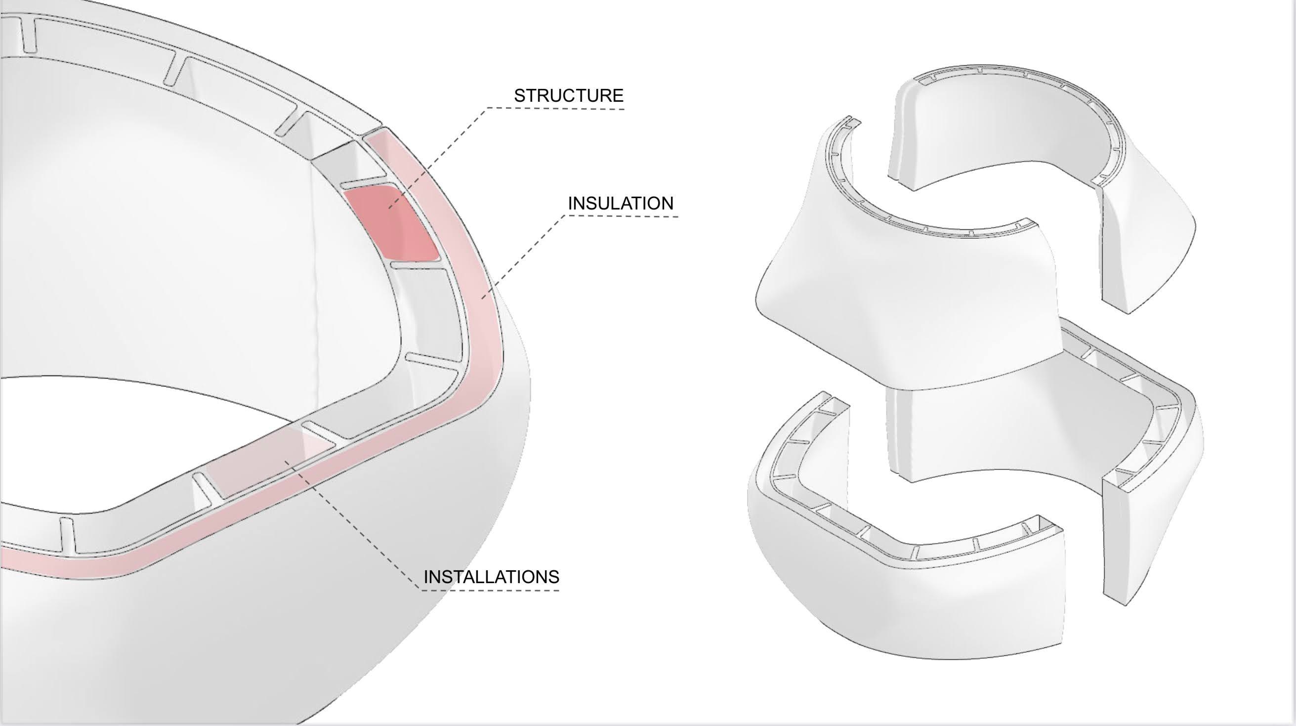 しかし海外の3Dプリンター住宅メーカーは既存住宅の延長線上で開発を行っており、必ず施工時に鉄筋等の構造体を必要としています。セレンディクスは「3Dプリンターに最適な住宅開発」を進めています。セレンディクスは住宅の形を球体(Sphere)にすることで構造体を必要としない球体の住宅開発を行います。