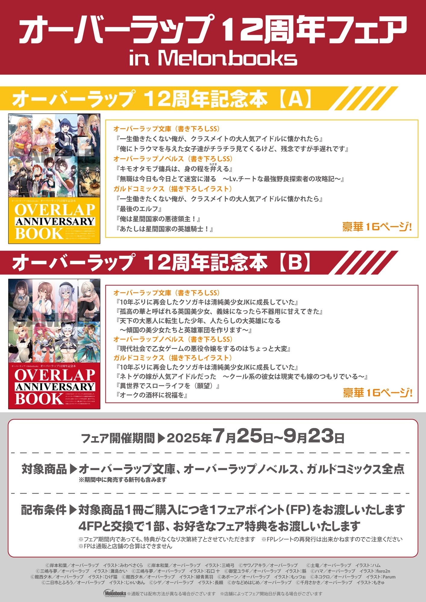 一部書店様では限定特典がもらえるオーバーラップ12周年フェアも開催いたします。