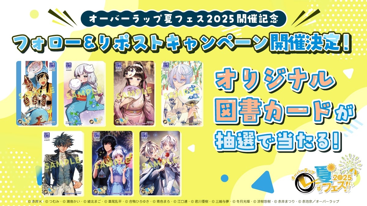 株式会社オーバーラップ(代表取締役社長:永田 勝治、所在地:東京都品川区)は、7月25日にオーバーラップ文庫・オーバーラップノベルス・ガルドコミックスの新刊が発売されるのにあわせ、書籍を購入すると『とんでもスキルで異世界放浪メシ』や『お気楽領主の楽しい領地防衛』など人気作の限定しおりがもらえる「オーバーラップ夏フェス2025」を開催いたします。
