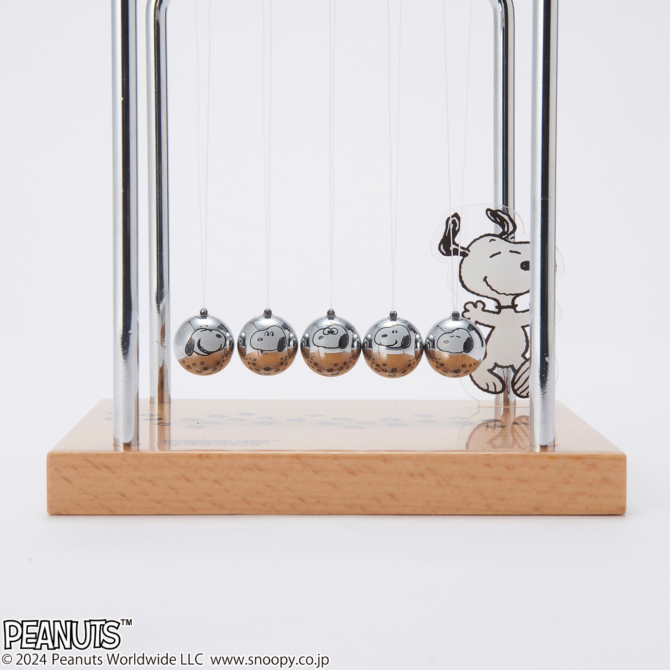 新発売のスヌーピーモデルは、ボールの一つ一つにスヌーピーの顔プリントをあしらい、台座には差し込み式のアクリルスタンドを付属しました。表情豊かなスヌーピーが愛らしく、ボールの動きにもマッチしたデザインで、大人から子供まで楽しむことができるユニークなインテリアアイテムです。